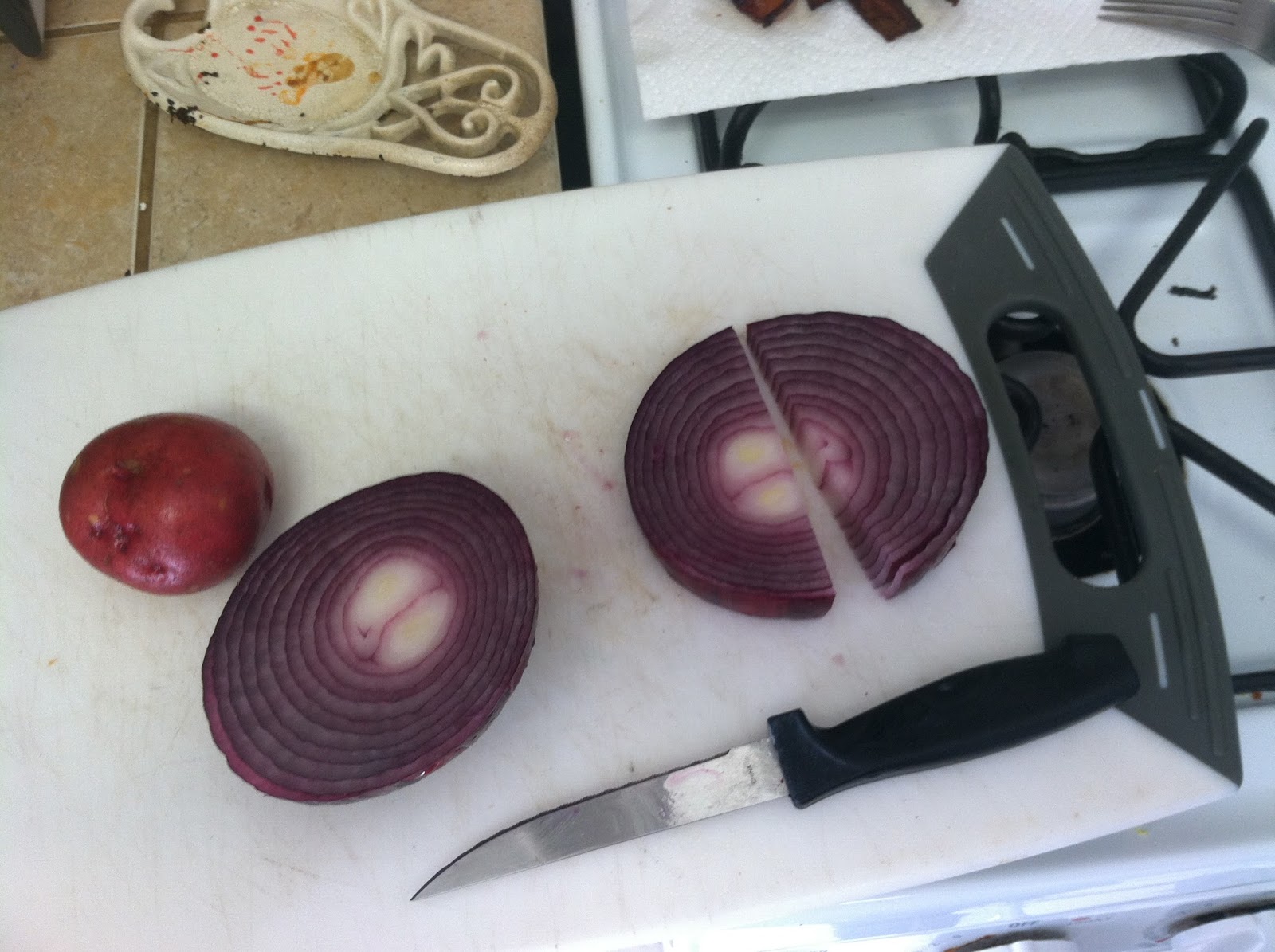 Leftover onions and red peppers. Need them veggie vitamins.